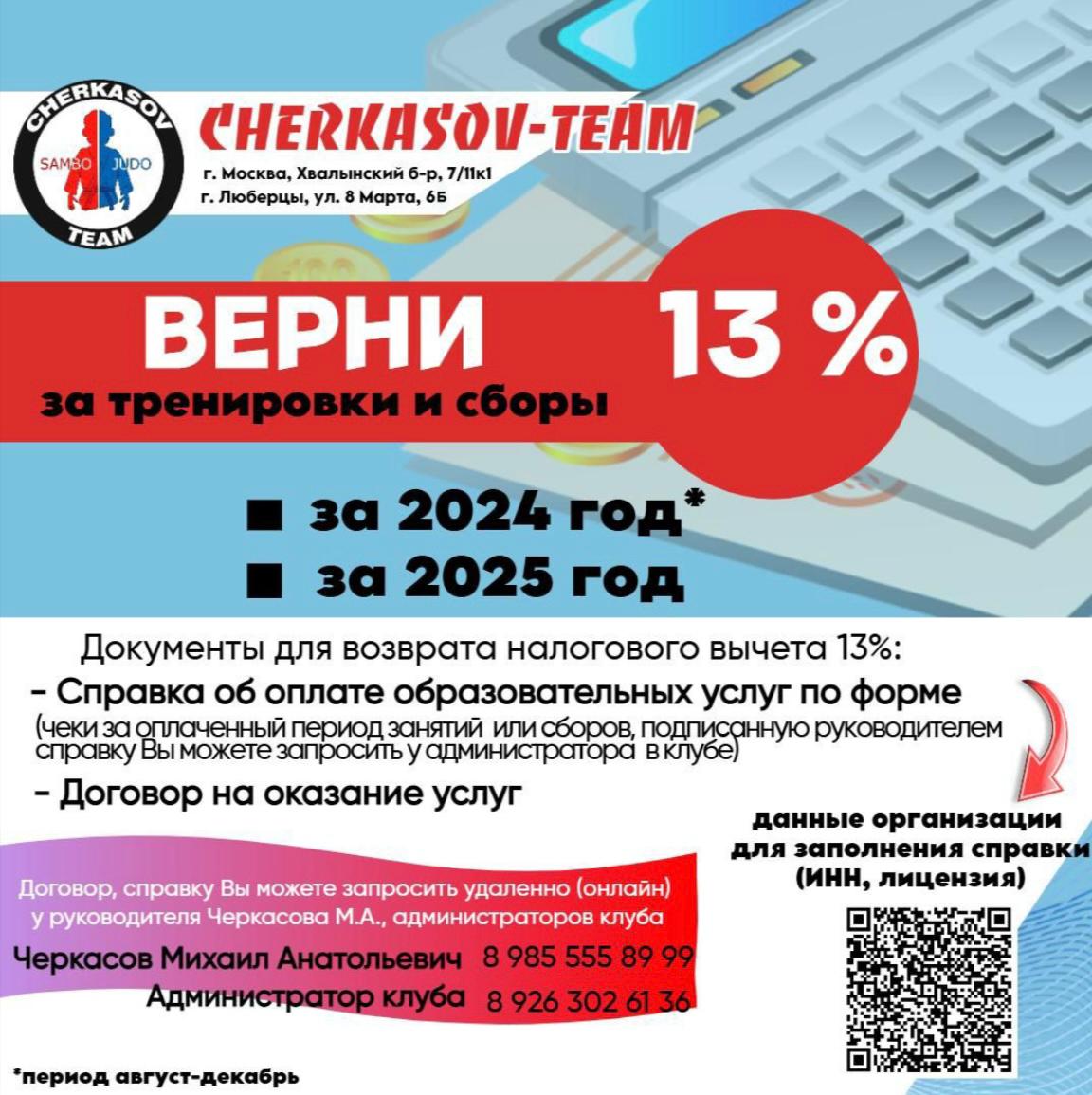 ВЫЧЕТ 13% ЗА ТРЕНИРОВКИ И СБОРЫ